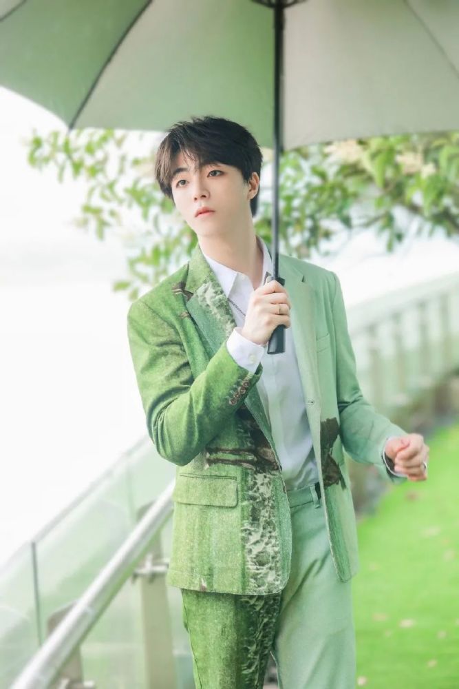 wuli凯凯这个造型瞬间成熟硬朗了,化身霸道总裁,蓝色的外套使整个造型都充满高级的味道。
